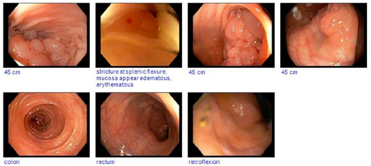 A 39-year-old woman with a history of gastritis and hiatal hernia presented to the emergency department with several months of cramping abdominal pain, watery diarrhea occurring four times daily, bilious emesis, and progressive intolerance to solid foods. She also reported an unintentional 34-pound weight loss over the preceding 6 months. Several weeks before presentation, she had been hospitalized elsewhere for presumed infectious colitis and was discharged on oral ciprofloxacin and metronidazole. She denied hematochezia, fever, and any family history of inflammatory bowel disease.